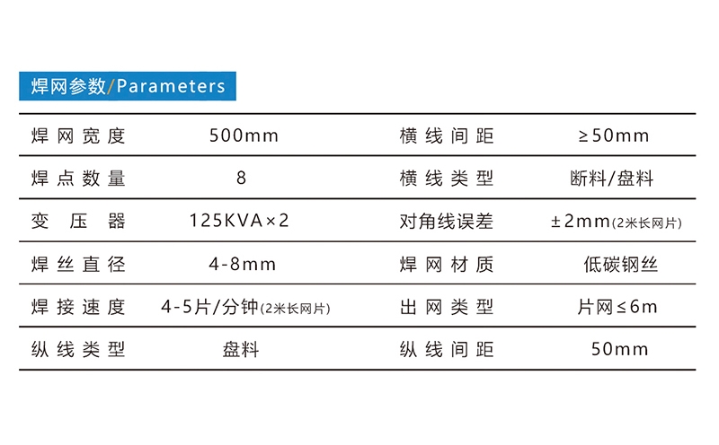ALC是蒸壓加氣混凝土(Autoclaved lightweight Concrete)的簡稱,它是以石英砂或粉煤灰、水泥、石灰等為主原料,內配雙層雙向冷拔絲鋼筋網片,經過高溫蒸汽養(yǎng)護而成的多氣孔混凝土成型板材;既可做墻體材料,又可做屋面板、樓層板、外墻造型,是一種性能優(yōu)越、安裝簡便、靈活的成熟建材。加氣板網片焊接生產線,可以高效率地自動焊接ALC所需的鋼筋網片。焊點數(shù)量8個,焊網寬度500mm,焊接絲徑4-8mm,每分鐘約焊接5片。標準配置:縱線盤絲、調直切斷、自動排料、自動送料、橫線料斗、焊接主機、伺服拉網、快速出網、簸箕式落網??蛇x配置:正反片落網、落網小車、橫線盤料、工業(yè)冷水機、空壓機。河北驕陽焊工有限公司,0318-7063097